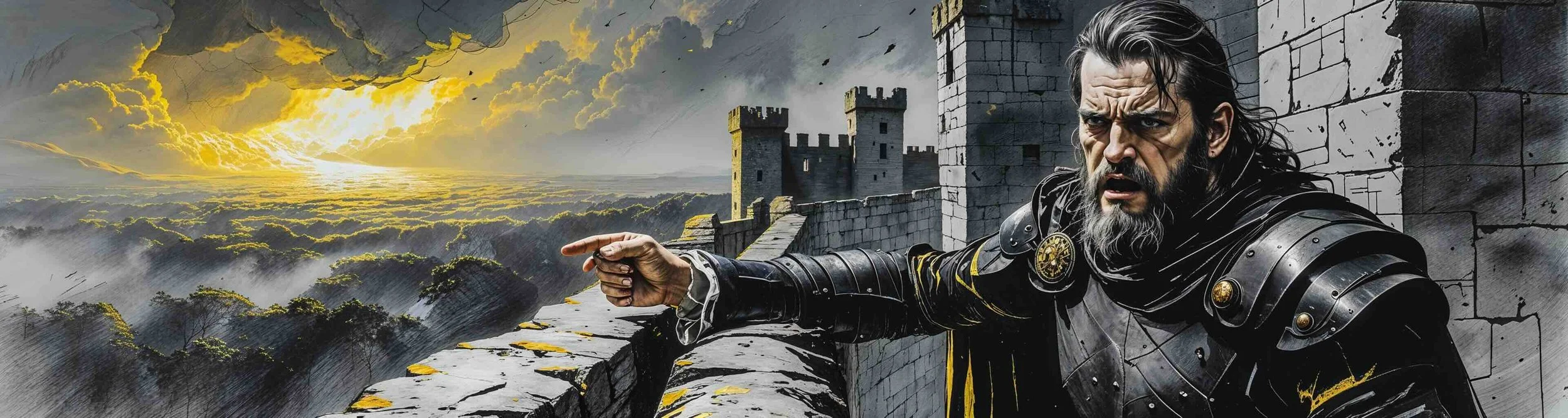 Inside Dunsinane Castle, Macbeth boastfully prepares to withstand the approaching siege, confident in the strength of his fortress. Suddenly, the cry of women is heard from within. Macbeth reflects on his own emotional numbness, realising that he is no longer capable of feeling terror. Seyton returns with the news that the Queen is dead. Instead of expressing profound grief, Macbeth delivers a deeply nihilistic soliloquy, concluding that life is a meaningless illusion. His dark reverie is interrupted by a terrified messenger who reports the impossible: Birnam Wood appears to be moving towards the castle. Recognising that The Witches have deceived him with partial truths, Macbeth's confidence crumbles. Realising that starving inside the castle is no longer an option, he orders the alarm bell to be rung and resolves to die fighting in the open.